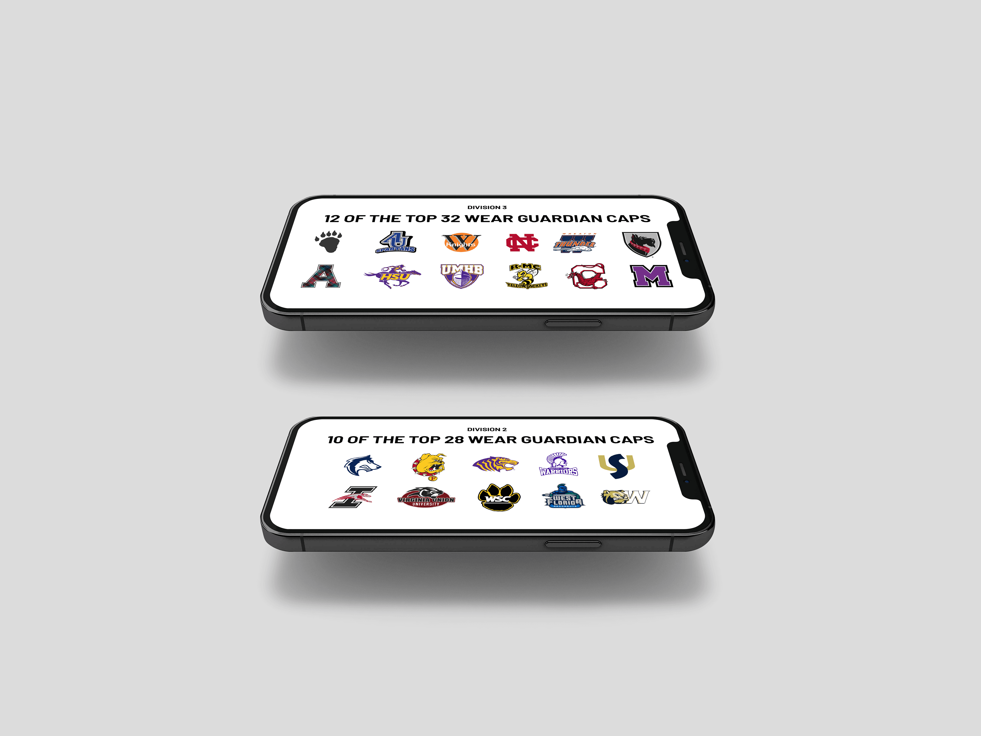 Guardian Caps, a sports safety equipment company specializing in protective helmet padding, needed marketing materials to demonstrate their widespread adoption and credibility in the athletic market. During my time as a graphic design apprentice at See.Spark.Go, I was tasked with creating email graphics that would showcase Guardian Caps' reach across professional, collegiate, and high school athletics. The company needed a compelling visual proof point that would reinforce their industry leadership and build trust with potential institutional buyers.