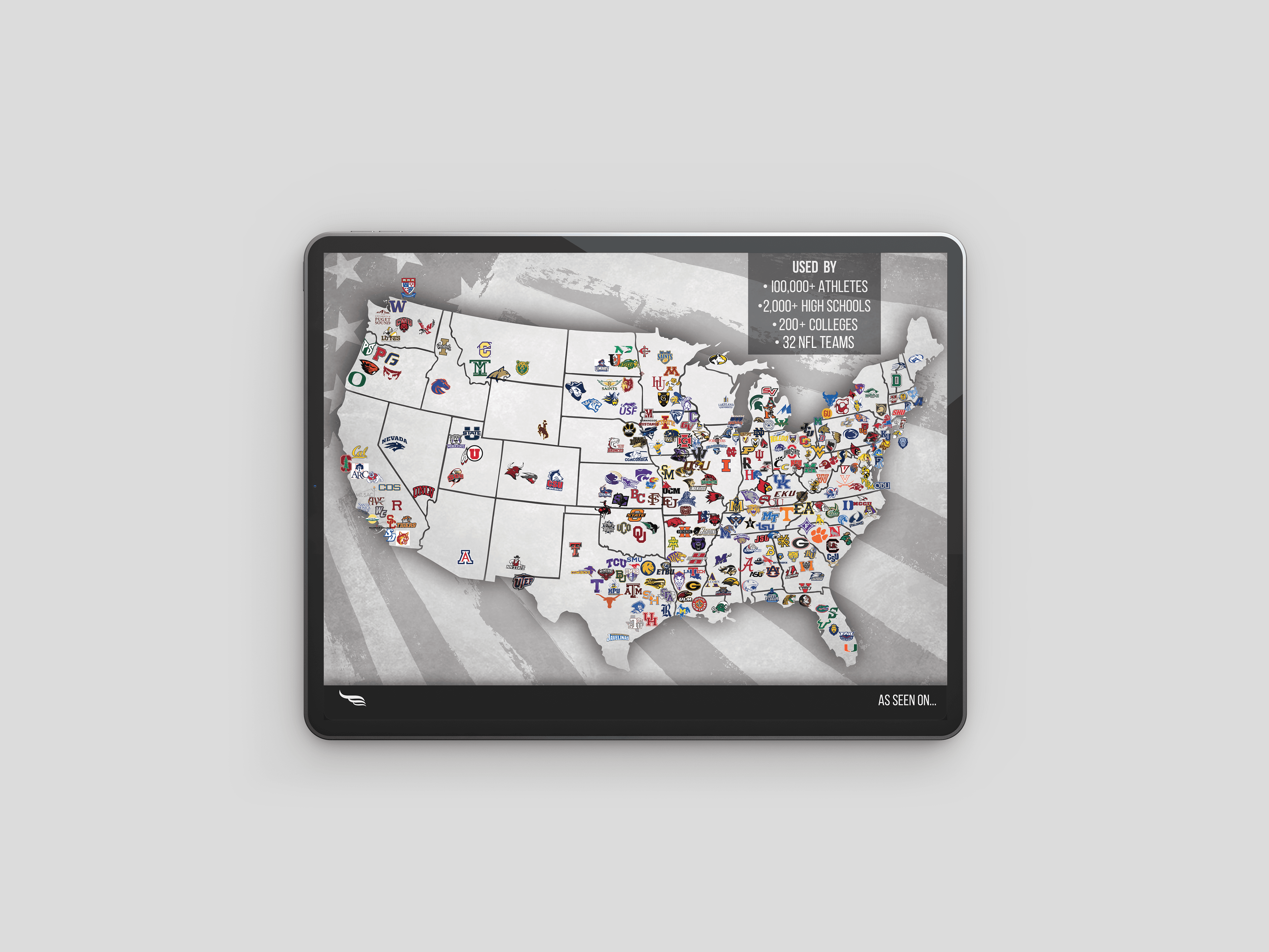 Simply stating usage statistics doesn't have the same impact as visualizing them. Guardian Caps needed a way to make their impressive adoption numbers—100,000+ athletes, 2,000+ high schools, 200+ colleges, and 32 NFL teams—immediately understandable and credible. The design had to organize complex geographic and institutional data into a clear, scannable format while maintaining visual appeal. Additionally, the graphics needed to be optimized for email viewing across both mobile and desktop devices without losing clarity or impact.